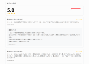 当ジムで使用している施設予約システムではお客様からのレビューをご覧いただくことが出来ます。